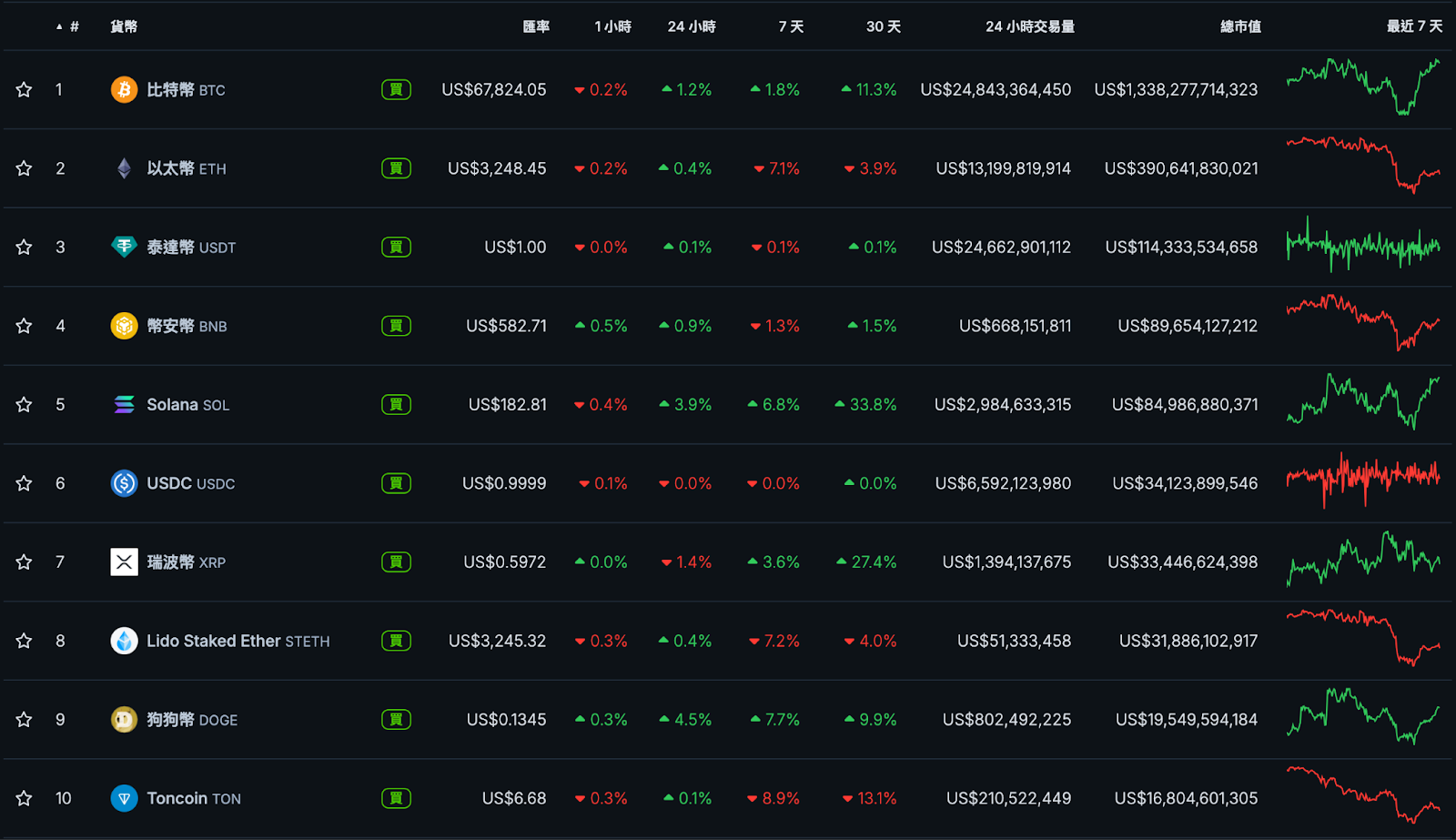 過去一週持續下跌 4.08%,沒有要回到 3 月水準的趨勢,市場盼望 ETH ETF 帶來 ETH 市值增長,使山寨市場連鎖反應。