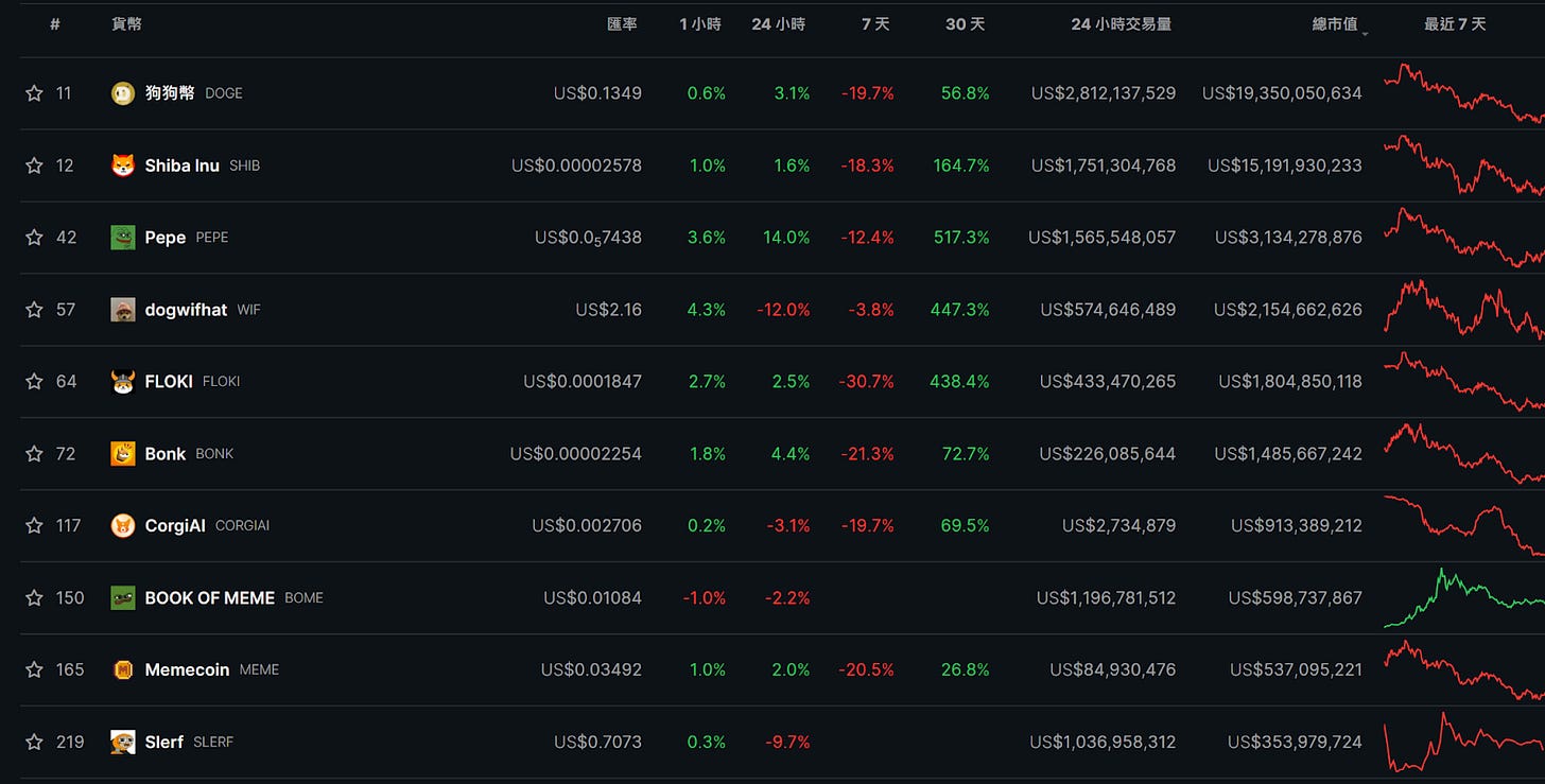 總體迷因幣賽道