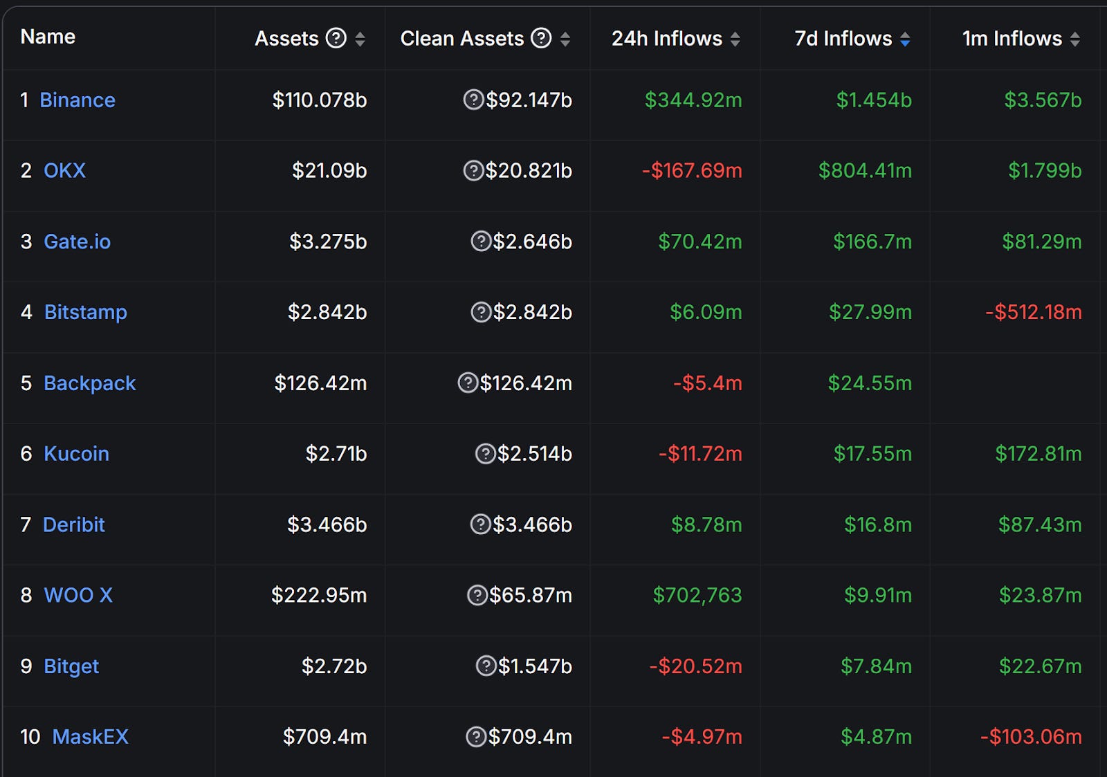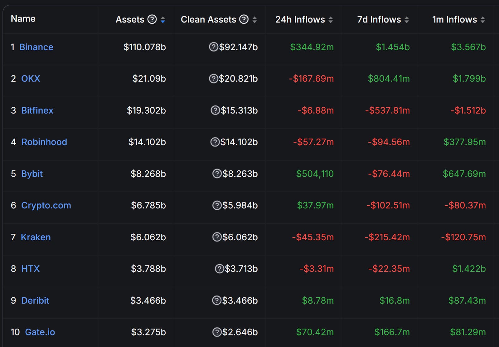 前 10 大交易所淨流入
