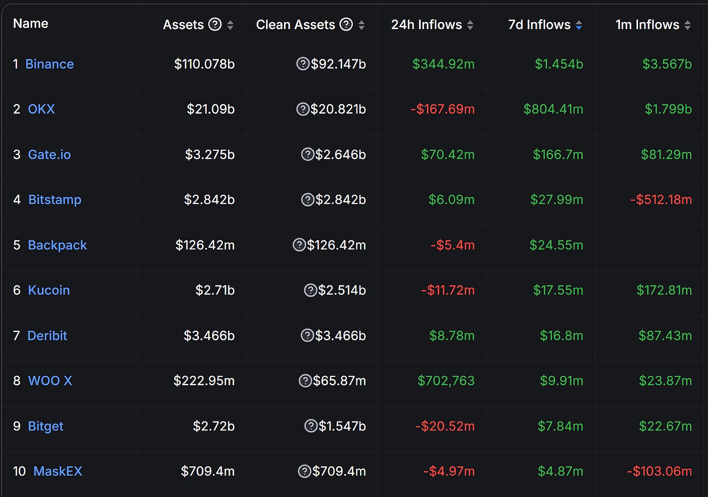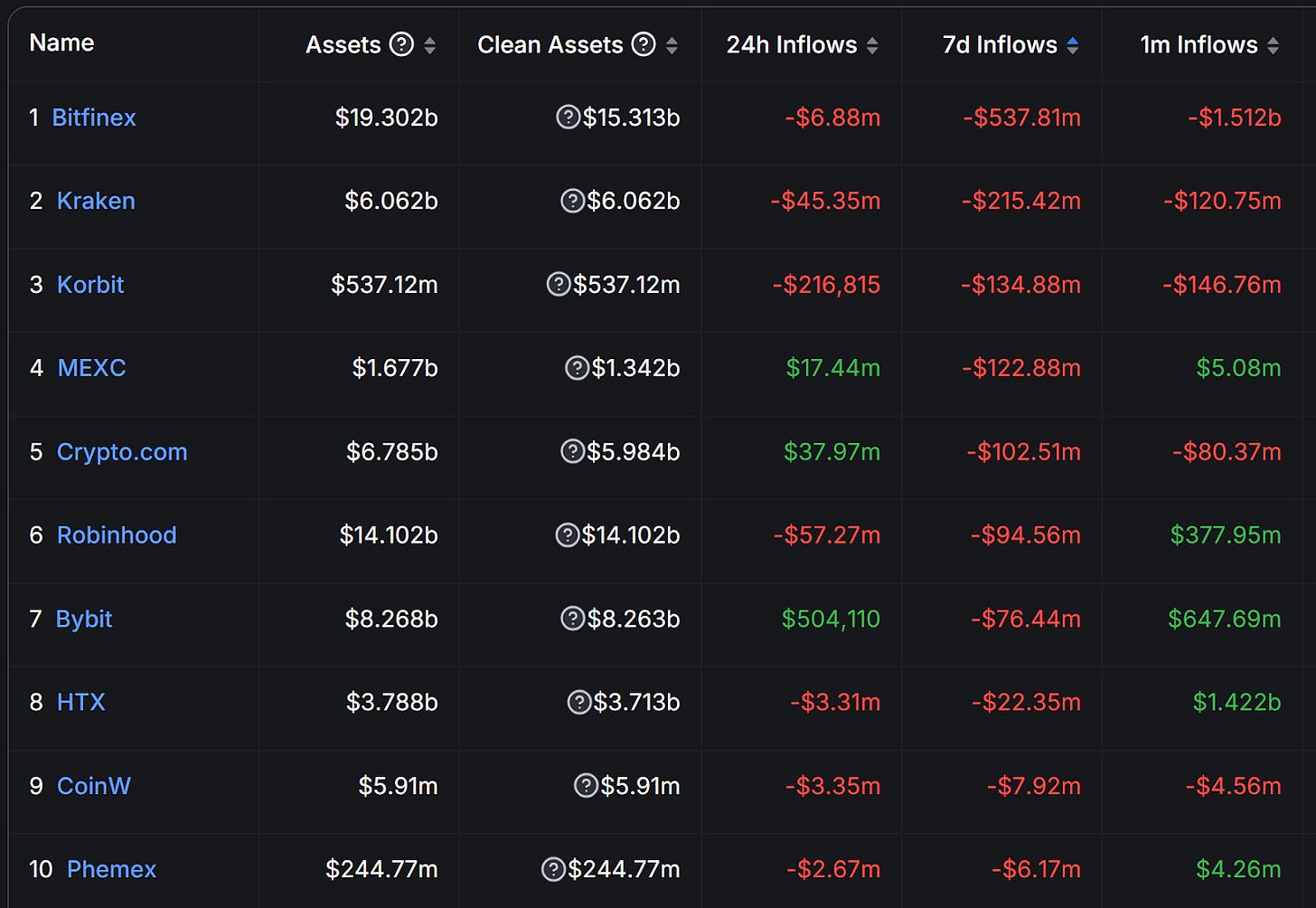 7 日流入前 10 名