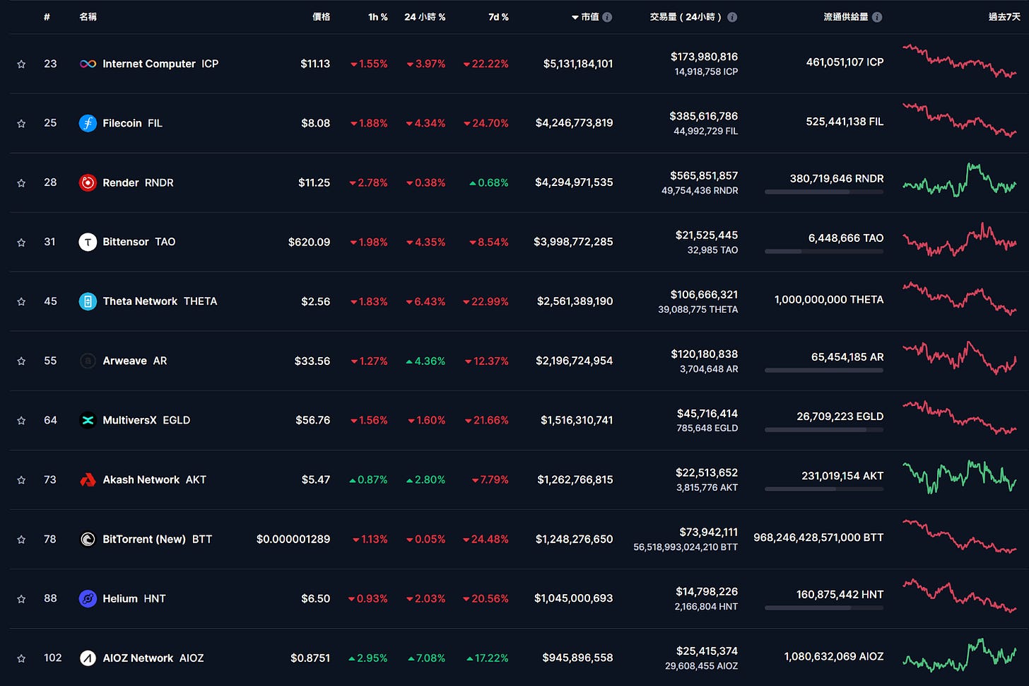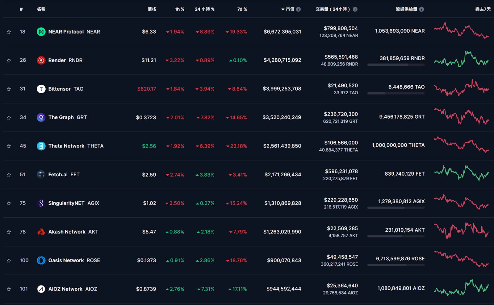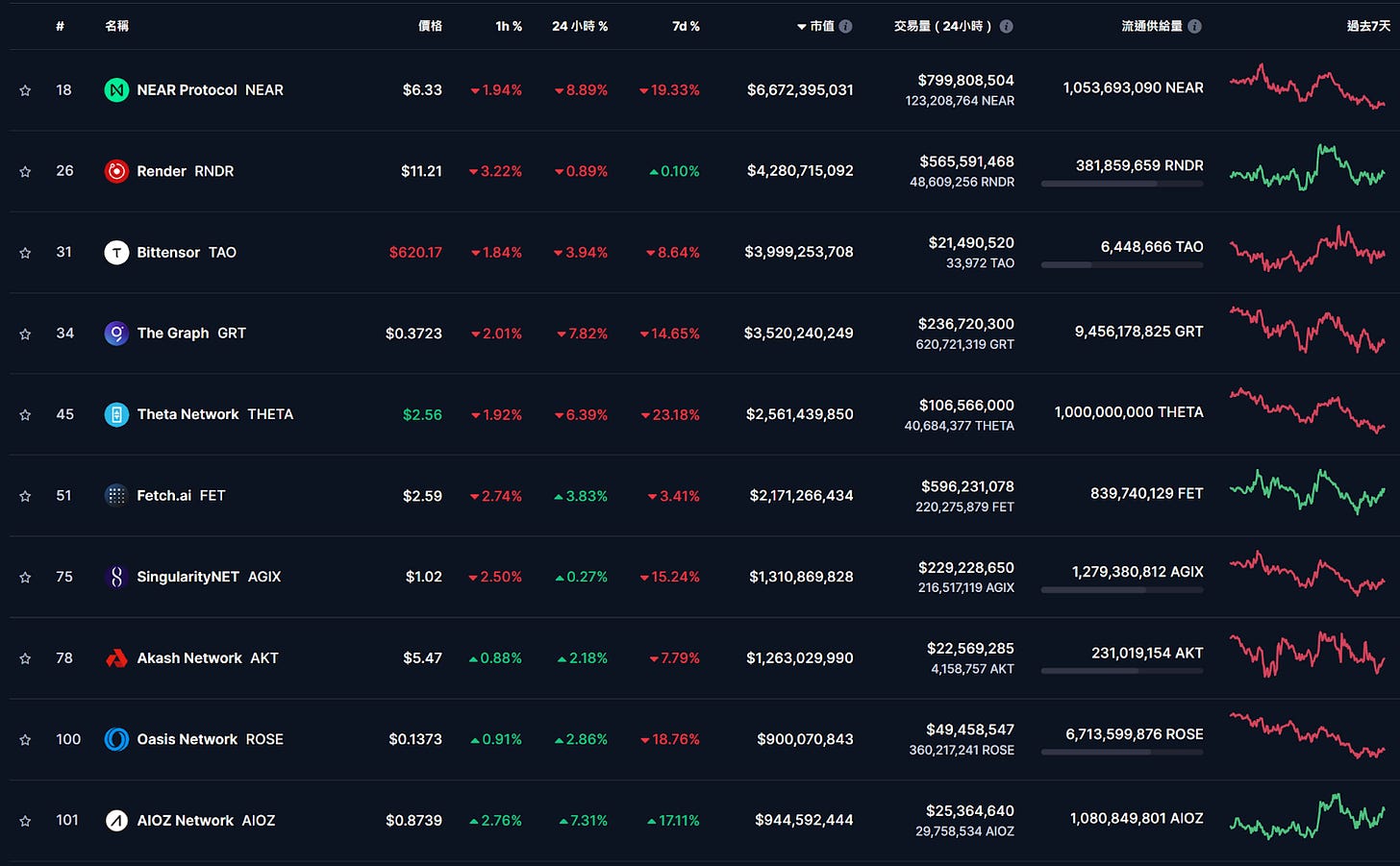 本週主流 AI 和 DePIN 項目總體來看大幅回調,可關注波卡生態的 Phala Network,同時具備隱私、AI、DePIN、模組化多重敘事,在市場下跌之際逆勢上漲。
