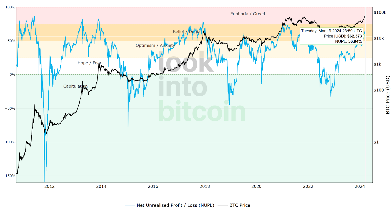 NUPL 從上周 63% 迅速回撤至 57% ,回到二月中的水準,顯示出許多交易者已實現獲利,市場看漲情緒銳減。