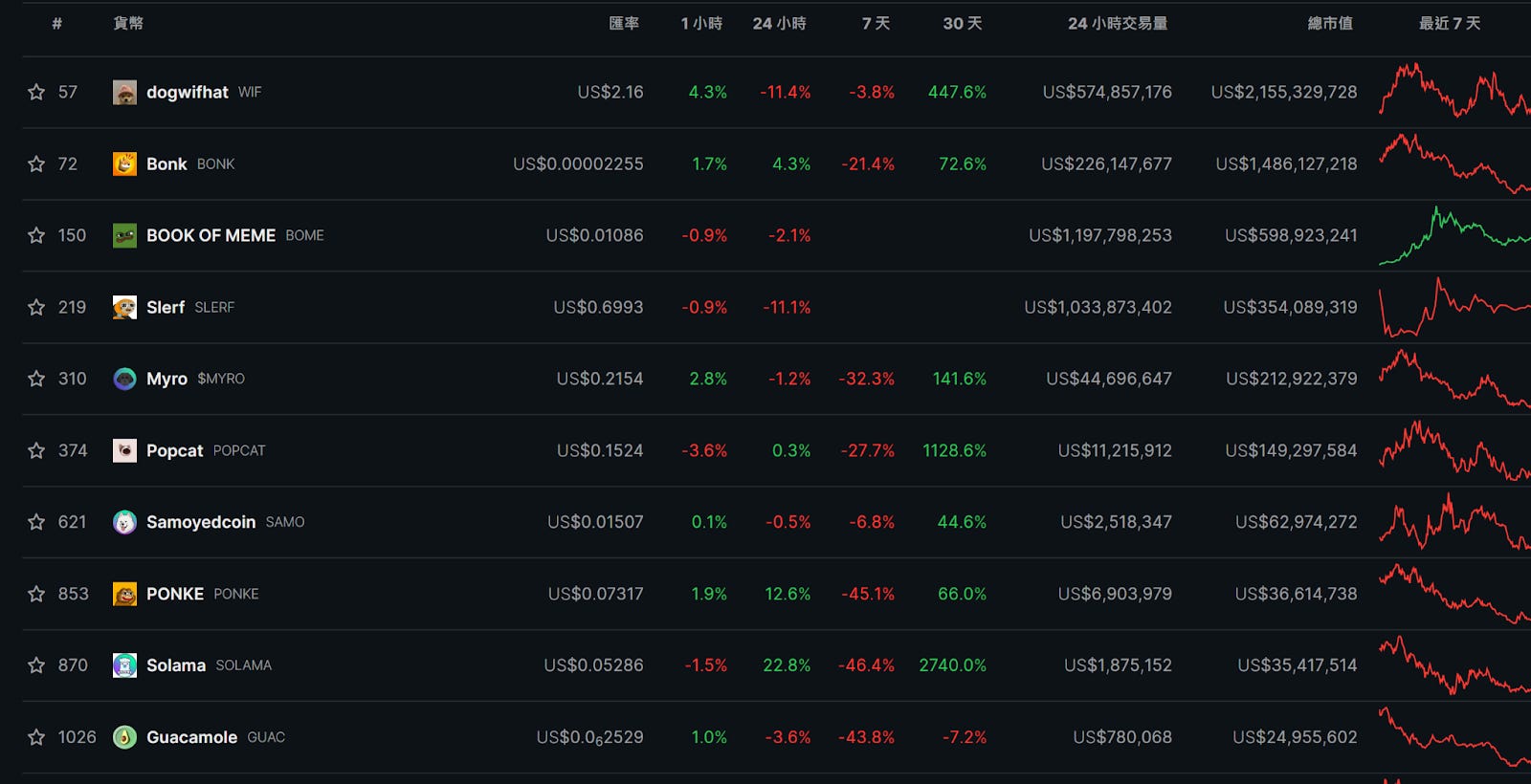 Solana 生態內迷因幣