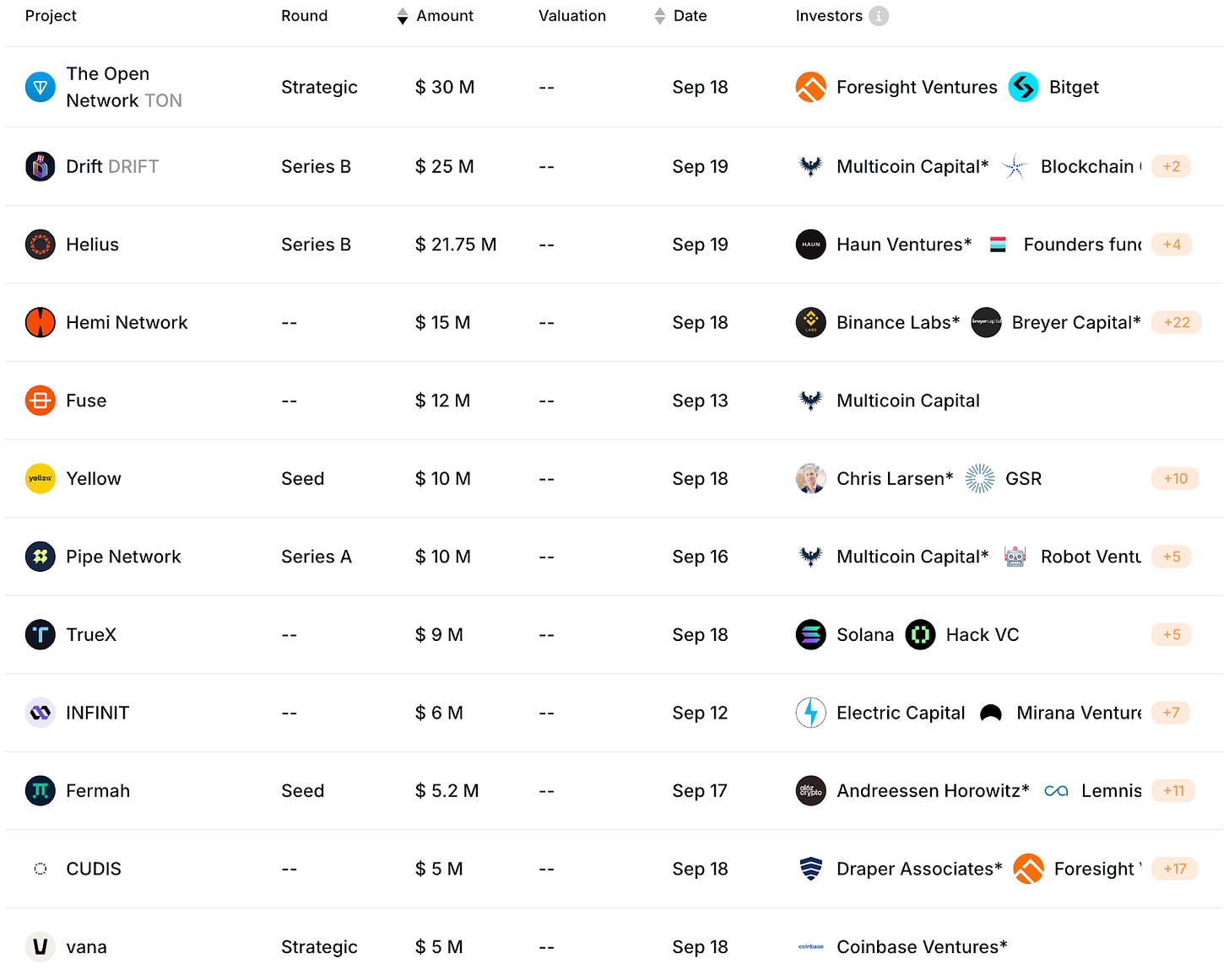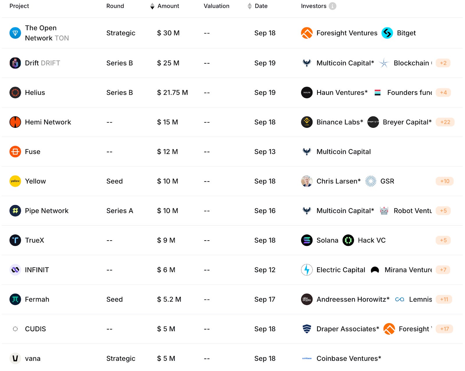 Yellow(1,000 萬美金)是一個去中心化清算網路,藉由通道技術與鏈抽象擴大生態中的資金效率。本輪融資由 Ripple 共同創辦人 Chris Larsen 領投,Consensys、GSR 等機構參投。