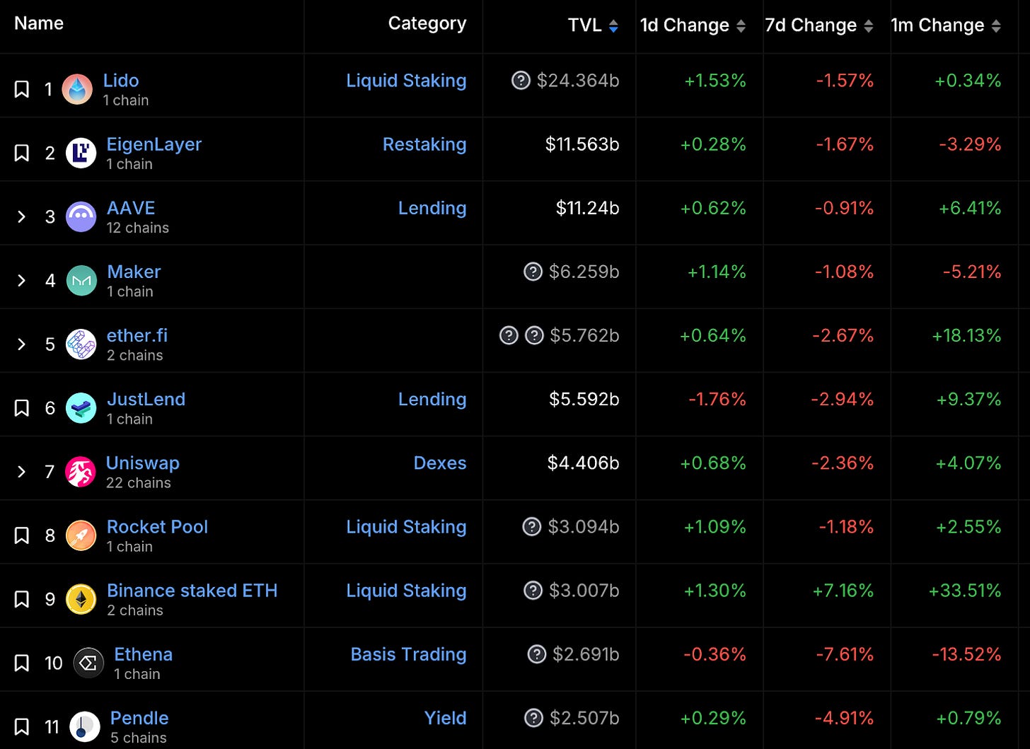過去一週鏈上與大盤行情皆相對黯淡,因此 TVL 漲幅較其他週低,也可以發現漲幅項目有持續發展的動能,漲幅因素不是一瞬間增長就後繼無力,而是穩健地持續增長。