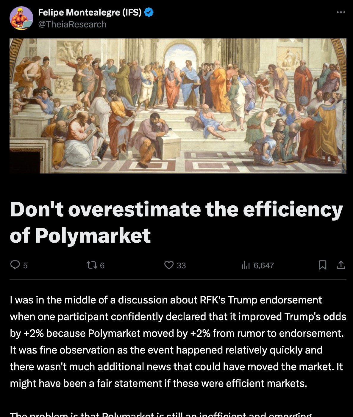 Source: Felipe Montealegre (IFS) | Don't overestimate the efficiency of Polymarket